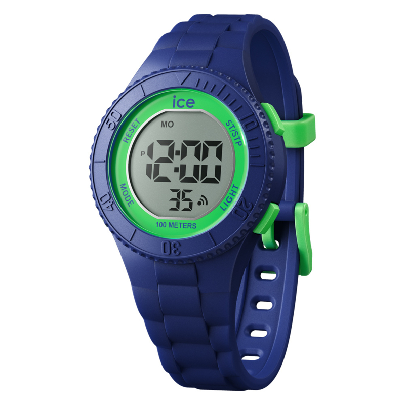 Artikelnummer: 021006 OverzichtDe Ice-Watch Ice Digit kinderhorloges maken deel uit van de nieuwe collectie digitale horloges van Ice-Watch. Het horloge heeft naast de normale tijd (naar keuze in 12 uur of 24 uur aanduiding) een stopwatch (chronograaf), een alarm, datumaanduiding en achtergrond verlichting.